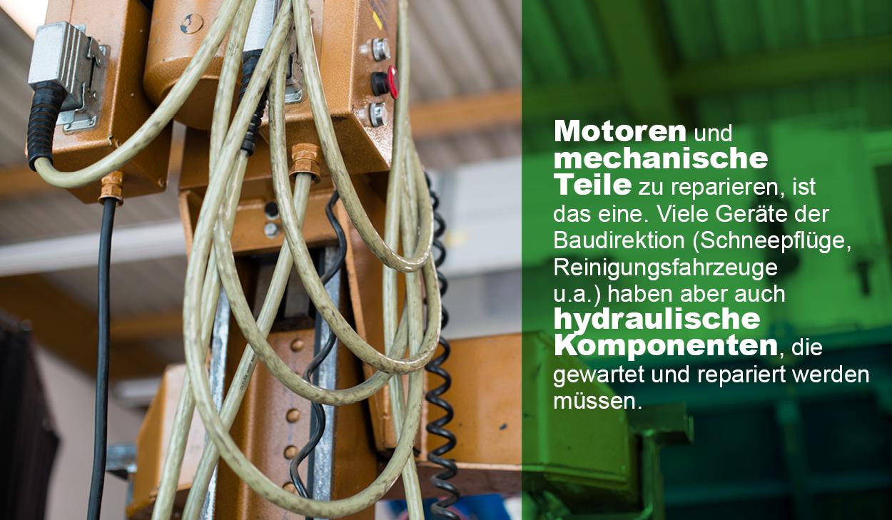 Für seine vielfältigen Aufgaben nutzt das kantonale Tiefbauamt einen eindrücklichen Geräte- und Fuhrpark. Da braucht es natürlich auch Profis, die sicherstellen, dass alles reibungslos funktioniert: mit regelmässiger Wartung und mit fachkundigen Eingriffen, wenn eine Panne auftritt.