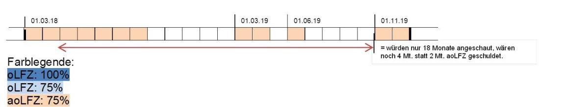 Nach der Praxis des Personalamts ist § 101 Abs. 2 VVO nur auf die ordentliche Lohnfortzahlung anwendbar. Ist die ordentliche Lohnfortzahlung einmal ausgeschöpft, kommt § 101 Abs. 2 VVO nicht mehr zum Tragen. Würde nämlich § 101 Abs. 2 VVO uneingeschränkt zur Anwendung gelangen, könnte dies im Einzelfall dazu führen, dass die Maximalfrist von zwei Jahren Lohnfortzahlung niemals ablaufen würde. Konkret bedeutet dies, dass die Rückrechnung bis maximal 18 Monate nur stattfindet, bis die ordentliche Lohnfortzahlung vollständig ausgeschöpft ist.