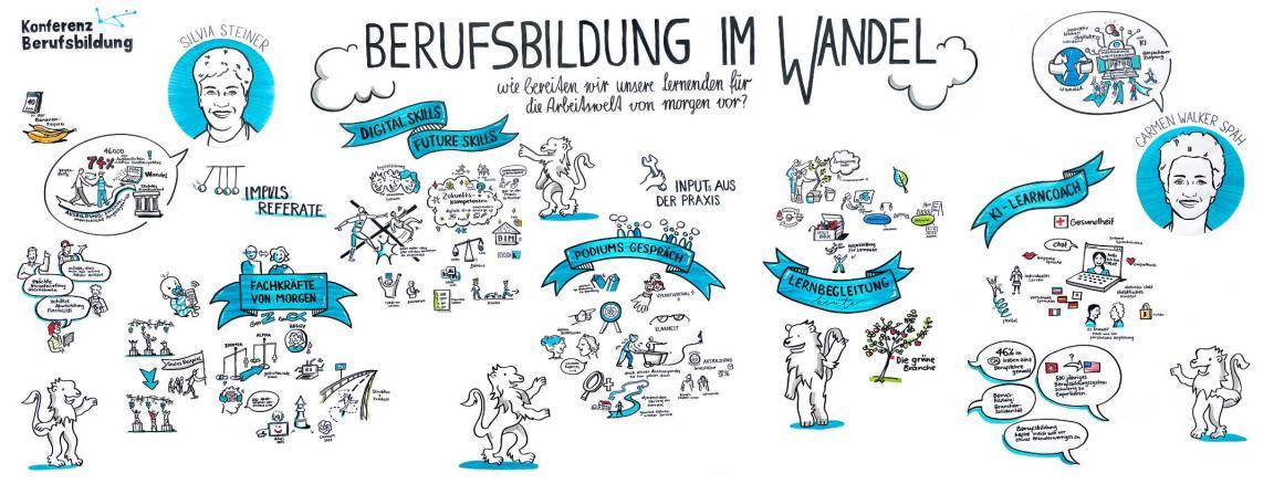 Grafik-Lernende haben die Konferenz Berufsbildung 2025 grafisch zusammengefasst.