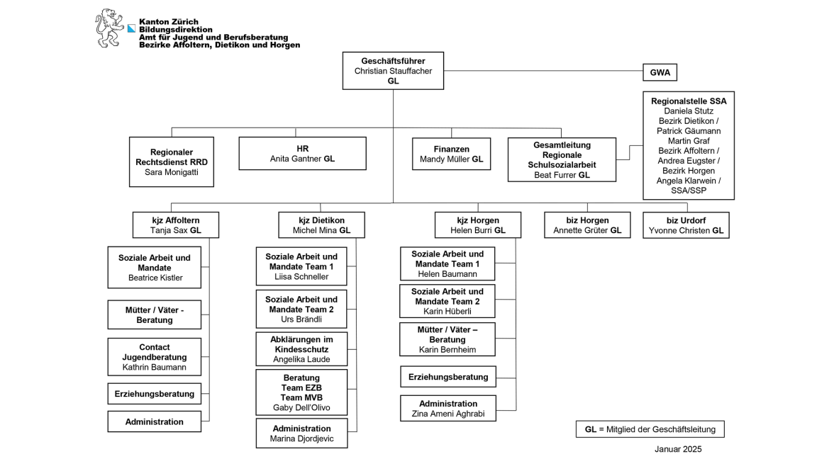 Die Geschäftsstelle der Bezirke Affoltern, Dietikon und Horgen ist eine von insgesamt vier regionalen Geschäftsstellen des Amts für Jugend und Berufsberatung.