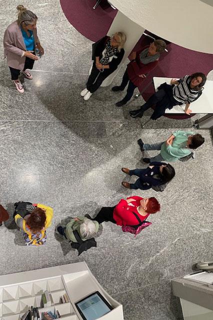 Das Team der Bibliothek Zug und Mitglieder der Kantonalen Bibliothekskommission Zürich leiteten spannende Gespräche zu einer Vielfalt an Themen, die wichtig für die Zukunft sind: Open Library, Kommunikation, Dritter Ort, Vermittlung, strategische Positionierung, Partizipation, Selfservice, Digitale Bibliothek, Outsourcing, Bibliothek und Schule sowie Netzwerke. Der Tag fand bei einem gemütlichen Apéro seinen Ausklang, während noch immer Ideen und Eindrücke ausgetauscht wurden.