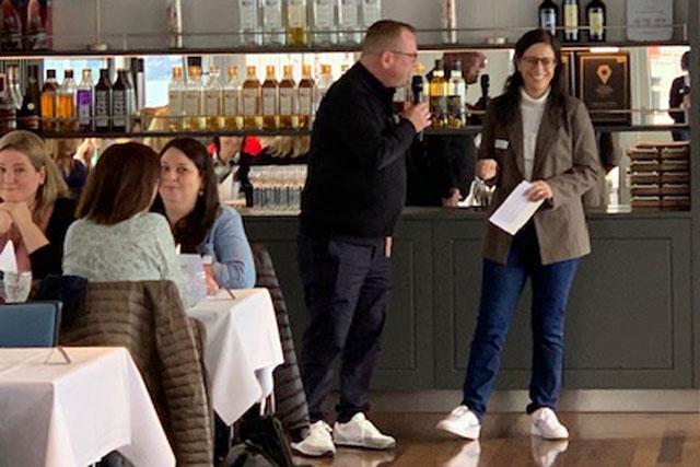 Mit einer genussvollen Schiffsrundfahrt auf dem Zugersee und einem feinen Mittagessen startete der zweite Teil des Bibliocamps 2024. Während die malerische Landschaft an den Fenstern vorbeizog, wurden an den Tischen rege Diskussionen über aktuelle Trends in der Bibliothekswelt geführt.