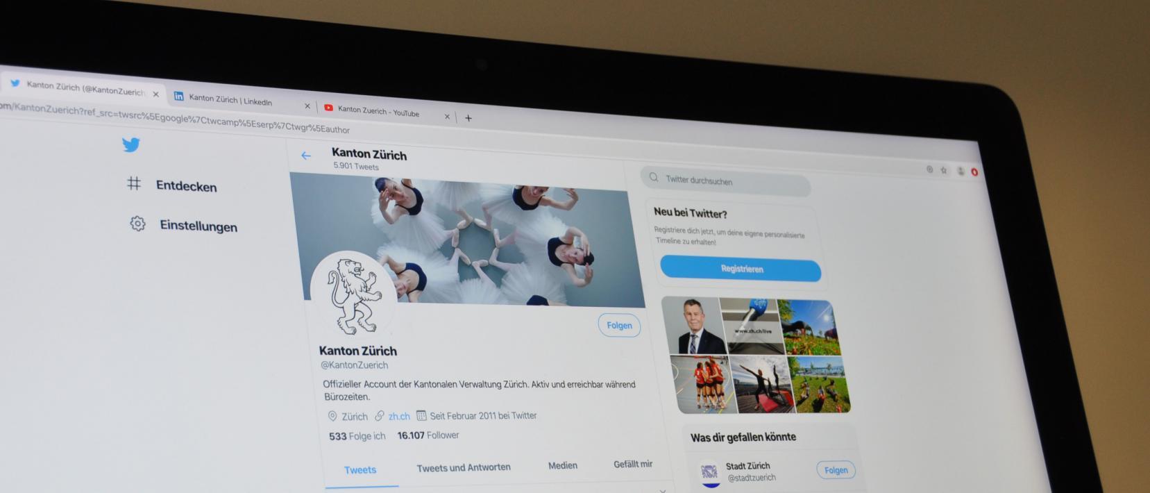 Der Kanton Zürich ist auf diversen Social Media-Kanälen aktiv und fördert den Dialog mit der Bevölkerung. Der Auftritt des Kantons wird durch die Regierungskommunikation betreut, während einzelne Direktionen und Organisationseinheiten wie Ämter und Fachstellen eigene Auftritte verfolgen.