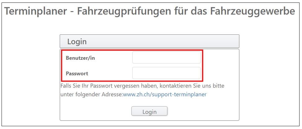Unter «Online-Dienstleistungen» im Tab «Terminplaner: Link, Support und Anleitung» können Sie ein neues Login beantragen und Ihr Passwort zurücksetzen lassen. Sie finden dort auch eine Anleitung.