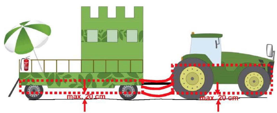 Auf abgesperrten Umzugsrouten können die Masse der gebauten Fahrzeuge überschritten werden, sofern es der Veranstalter zulässt.
