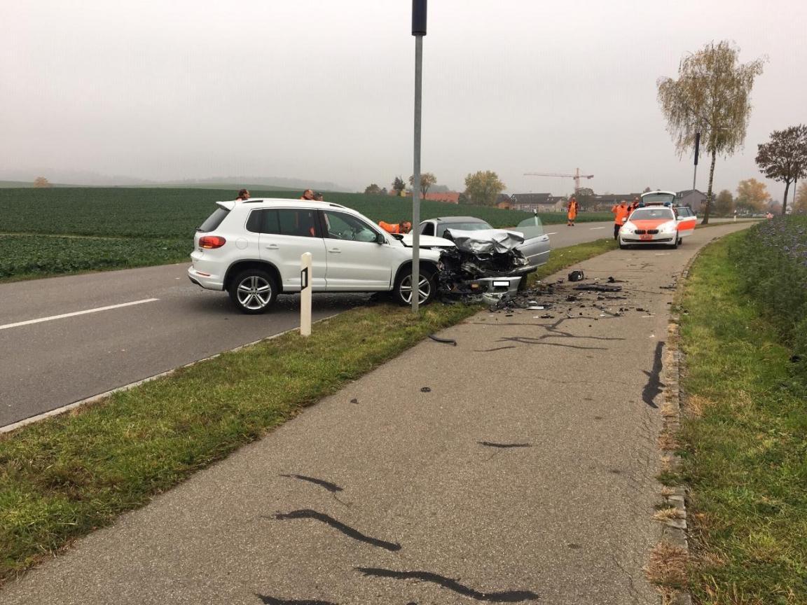 Bei einer Frontalkollision zwischen zwei Personenwagen haben am Montagmorgen (5.11.2018) in Niederhasli zwei Männer Verletzungen unbekannter Schwere erlitten.