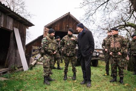 Regierungsrat Mario Fahr im Feldbesuch bei der Truppe. Bild «Regierungsrat Mario Fahr zum Truppenbesuch.» herunterladen -