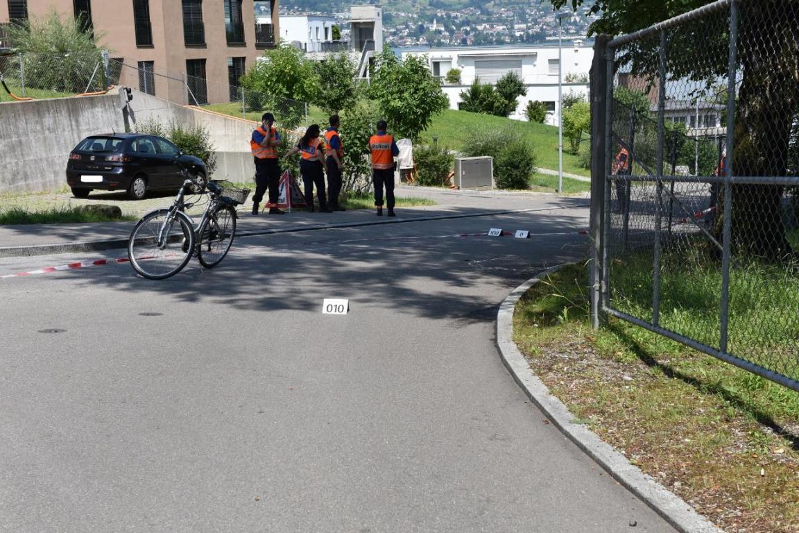 Eine 48-jährige Frau fuhr kurz vor 13.30 Uhr mit ihrem Fahrrad auf der Tiefenhofstrasse talwärts Richtung Seestrasse.