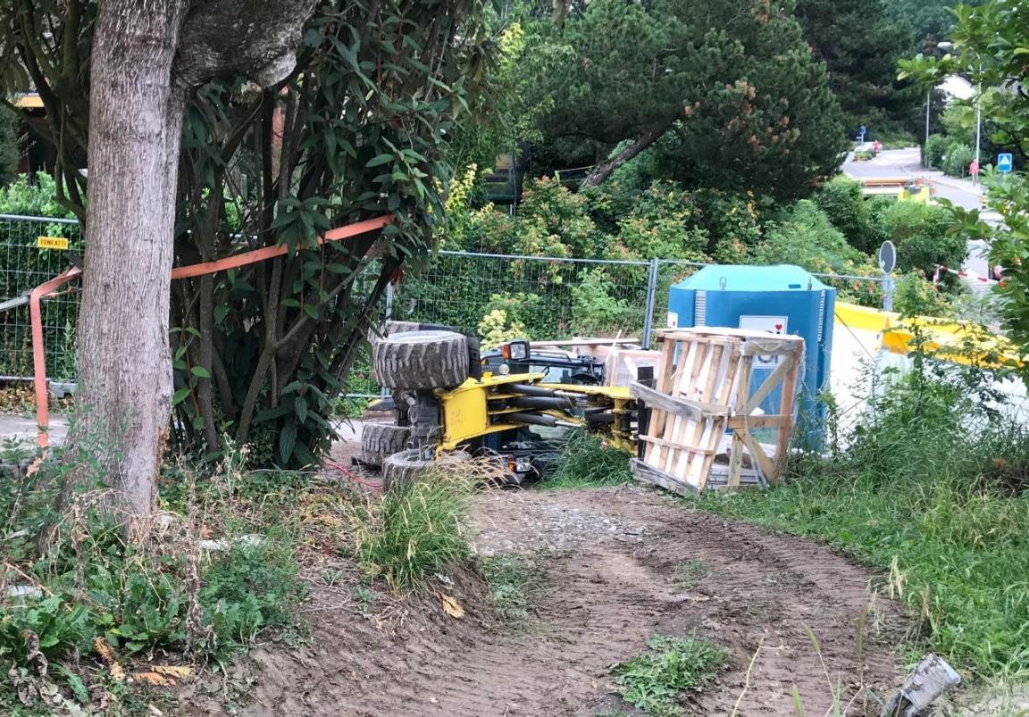 Kurz nach 16 Uhr fuhr ein 52-jähriger Arbeiter mit einem Radlader (Baumaschine mit Knickgelenk), auf der Ladegabel beladen mit einem Palett Marmorplatten, eine leichte Böschung hoch. In der Folge kippte das Gefährt aus zurzeit noch unbekannten Gründen auf die linke Seite. Dabei zog sich der Lenker tödliche Verletzungen zu und verstarb noch auf der Unfallstelle.