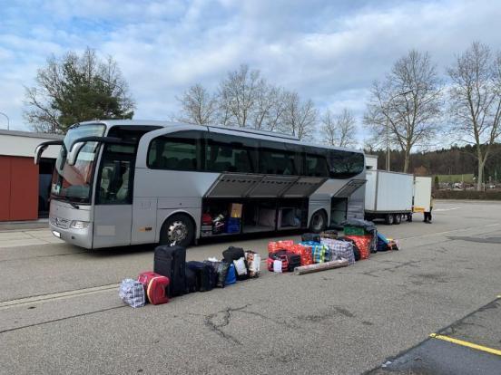 Nachdem die zusätzlichen Gegenstände im Anhänger des Cars verstaut und dieser abgehängt worden war, konnte der Reisebus seine Fahrt fortsetzen.