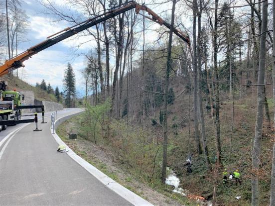 Kurz nach 13.45 Uhr fuhren drei Motorradlenker von Langnau a.A. herkommend über den Albispass Richtung Hausen a.A. Ungefähr 700 Meter nach der Passhöhe, streifte der mittlere Fahrer dieser Gruppe in einer Linkskurve die rechtsseitige Trottoirkante. Folglich überfuhr er das Trottoir und stürzte anschliessend ungefähr 20 Meter in ein Tobel, wo er im Bach liegen blieb. Bei diesem Sturz zog sich der 23-jährige Mann schwere Verletzungen zu. Er musste durch Angehörige der Feuerwehr Hausen a.A., unter Einsatz von Absturzsicherungsmaterial, aus dem Tobel geborgen werden. Nach der Erstversorgung vor Ort durch das Team eines Rettungswagens wurde der Verletzte in ein Spital gefahren.