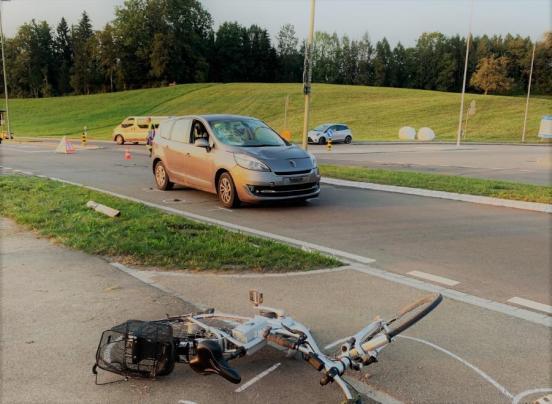 Bei einem Verkehrsunfall mit einem Personenwagen hat am Samstagabend (12.9.2020) in Hinwil eine Fahrradlenkerin schwere Verletzungen erlitten.