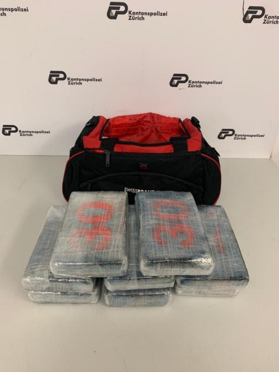 Die Kantonspolizei Zürich hat am Sonntagvormittag (29.11.2020) im Flughafen Zürich einen Mann verhaftet, der über neun Kilogramm Kokain in einer Reisetasche mitgeführt hatte.