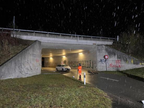 Kurz vor 18 Uhr fuhr eine 36-jährige Personenwagenlenkerin auf der Adlikerstrasse Richtung Andelfingen. Zur selben Zeit fuhren drei Velofahrer in die Gegenrichtung. Im Bereich der Autobahnunterführung querten zwei der Velofahrer die Strasse und befuhren eine erhöhte Fläche am gegenüberliegenden Fahrbahnrand. Als der erste Velofahrer von der Fläche retour auf die Fahrbahn der Adlikerstrasse sprang, kam es zur Kollision mit dem Fahrzeug der 36-jährigen Lenkerin. Durch den heftigen Zusammenprall erlitt der 12-jährige Junge mittel bis schwere Verletzungen und musste mit einem Rettungshelikopter der Rega in ein Spital geflogen werden.