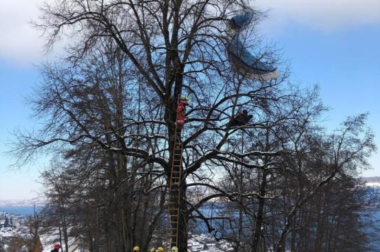 Ein Gleitschirmpilot hat sich am Samstagnachmittag (13.2.2021) in Oberrieden in einer Baumkrone verfangen und ist hängengeblieben.
