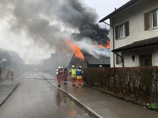 Kurz vor 16 Uhr meldete ein Passant, dass das gemeindeeigene Lagergebäude an der Haldenstrasse brennen würde. Die sofort ausgerückte Feuerwehr brachte durch ihr rasches Eingreifen den Brand schnell unter Kontrolle und verhinderte zudem ein Übergreifen der Flammen auf nahe stehende Gebäude.
