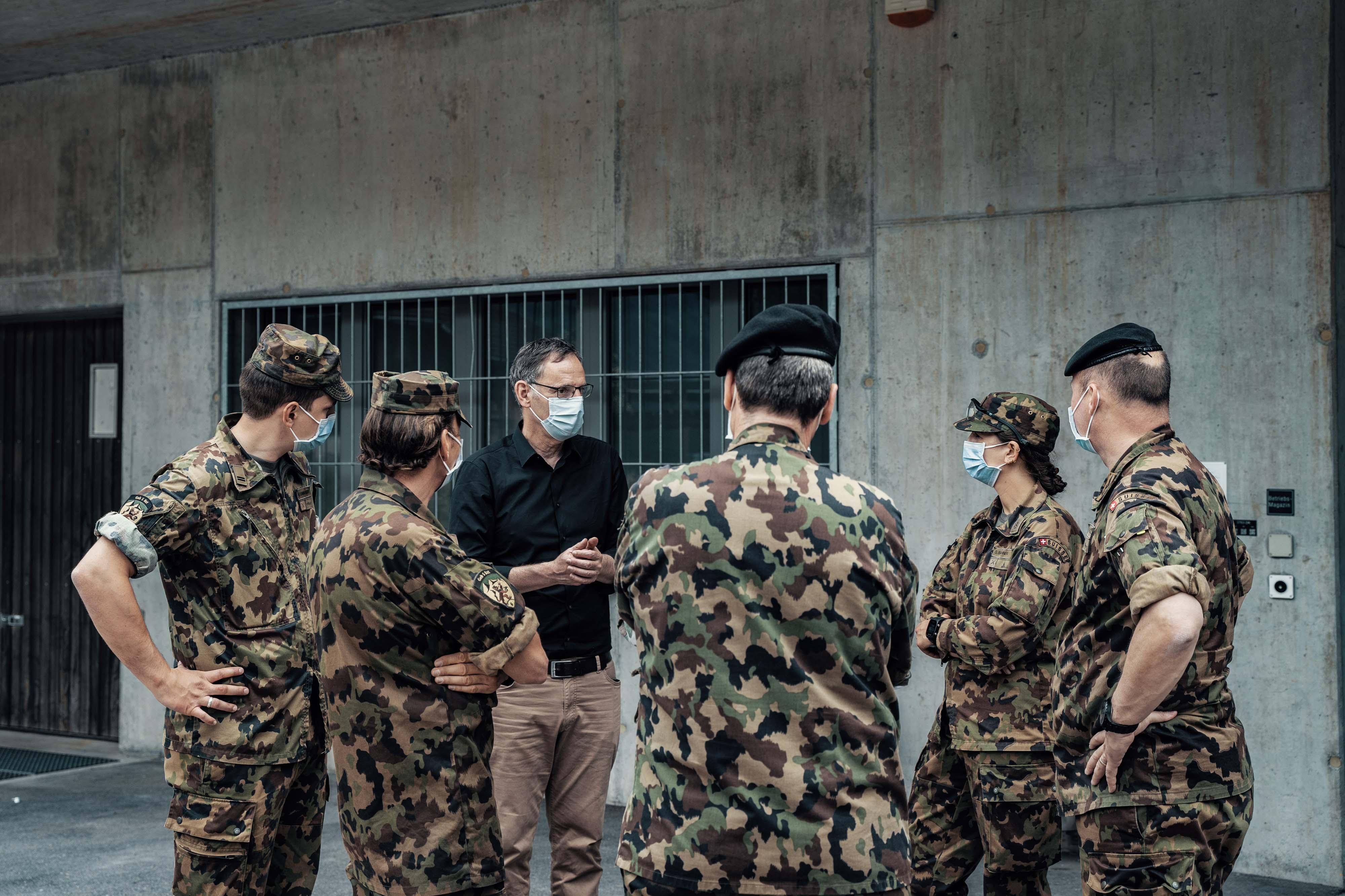 Regierungsrat Mario Fehr im Gespräch mit Kadern des Geb S Bat 6 Bild «Regierungsrat Mario Fehr im Gespräch mit Kadern des Geb S Bat 6» herunterladen -