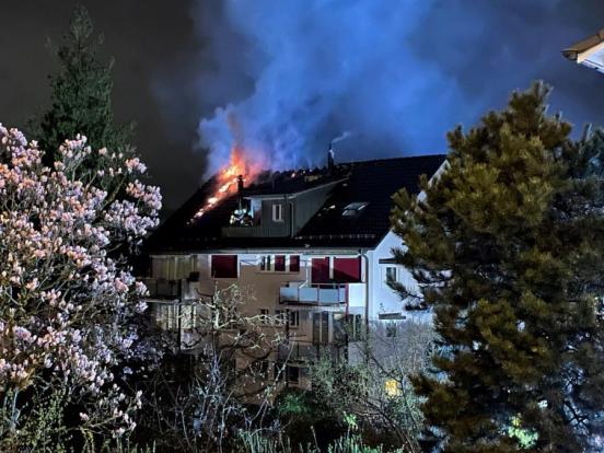 Bei einem Dachstockbrand in einem Mehrfamilienhaus ist am Donnerstagabend (31.3.2022) in Rüschlikon grosser Sachschaden entstanden. Personen wurden keine verletzt.