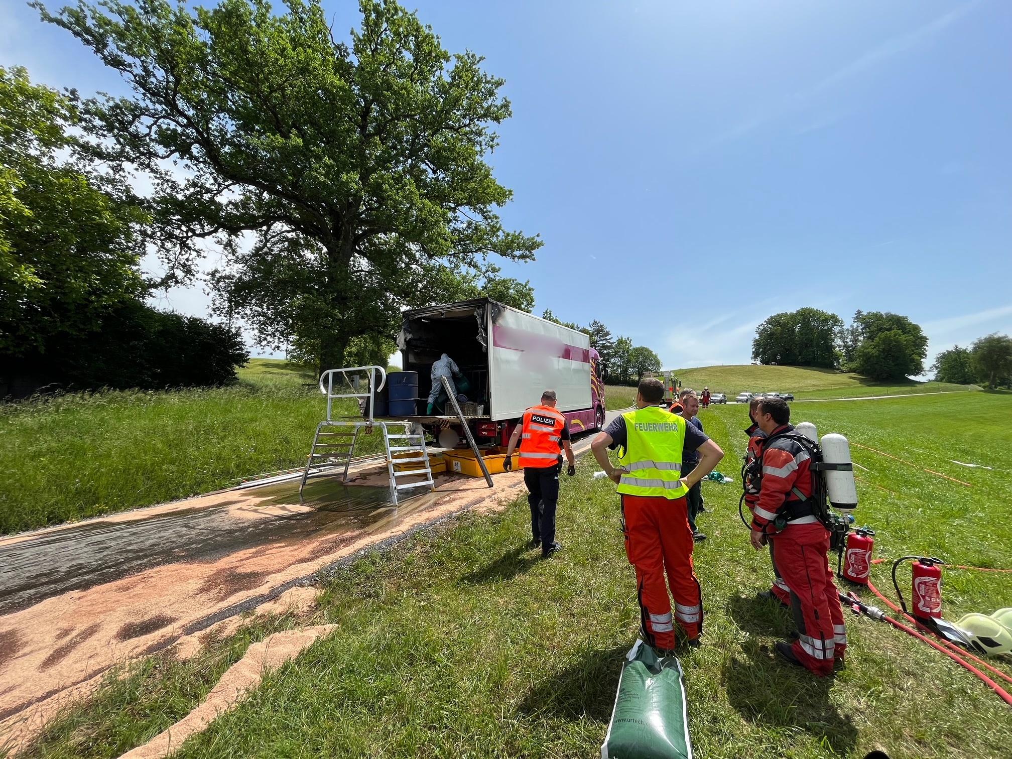 Beim Brand eines mit Gefahrgut beladenen Lastwagens ist am Montagmittag (23.5.2022) in Elsau hoher Sachschaden entstanden. Verletzt wurde niemand.