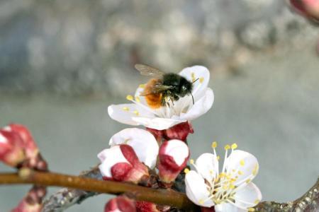 Wildbienen sind besonders effektive Bestäuber. Die Gehörnte Mauerbiene bestäubt Obstblüten um ein Vielfaches effizienter als Honigbienen Quelle: Christine Dobler Gross -