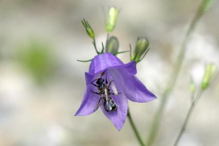 Ein vielfältiges Blütenangebot im Garten lockt verschiedene Wildbienenarten an. Mehrere Arten lassen sich zum Beispiel nur an Glockenblumen beobachten. Quelle: Christine Dobler Gross