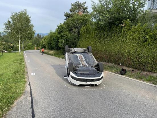 Bei einem Selbstunfall mit einem Personenwagen hat sich am Freitagmorgen (3.6.2022) in Wernetshausen (Gemeindegebiet Hinwil) eine Frau leichte Verletzungen zugezogen.