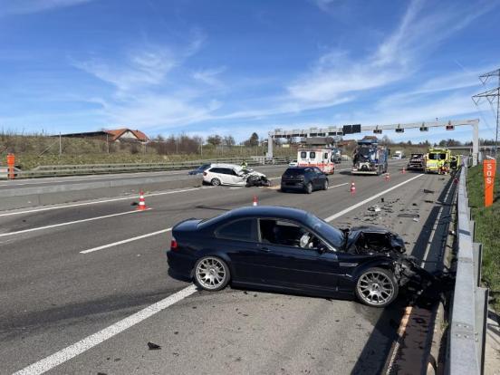 Bei einem Verkehrsunfall zwischen drei Fahrzeugen sind am Mittwochnachmittag (22.03.2023) auf der A1 bei Rümlang drei Personen verletzt worden.