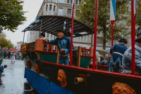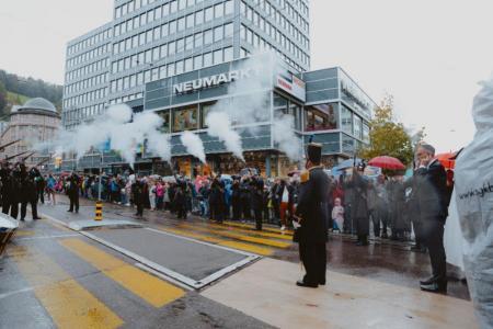 Mit dem Startschuss der historischen Landjäger der Kantonspolizei Zürich setzten sich über 50 Sujets vor dem St. Galler Rathaus in Bewegung und präsentierten sich den Schaulustigen am Umzug durch die Innenstadt. Neben allen Stadtzürcher Zünften waren auch unerwartete Gruppierungen anzutreffen. So zeigten sich etwa Globi und seine Freunde genauso in St. Gallen, wie Zürcher Folkloregruppen mit Wurzeln aus verschiedenen Teilen der Welt.
