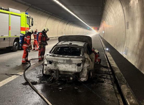 Beim Brand eines Autos im Uetlibergtunnel (Zürich) ist am Donnerstagmorgen (4.4.2024) am Fahrzeug Totalschaden entstanden. Verletzt wurde niemand.