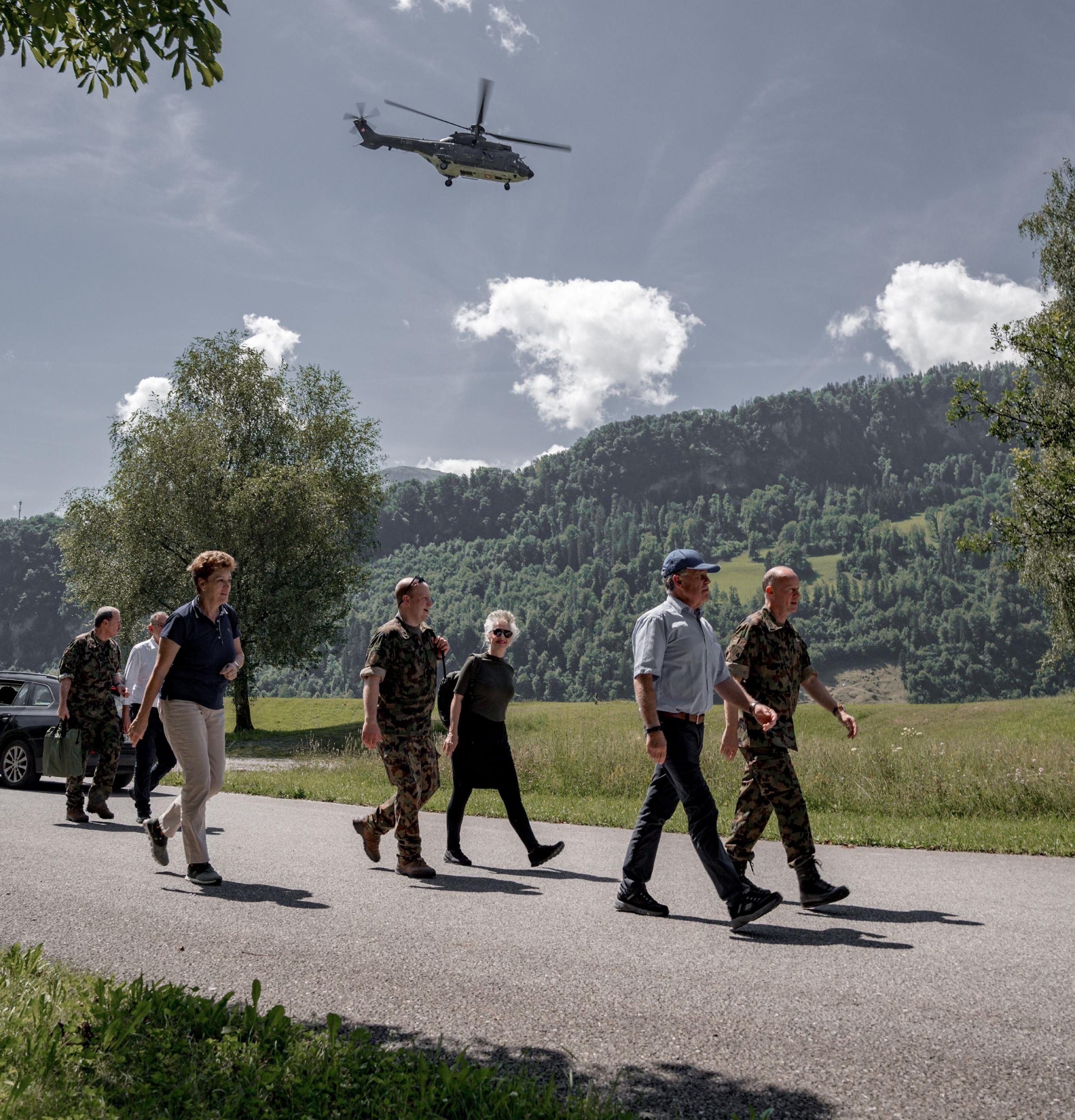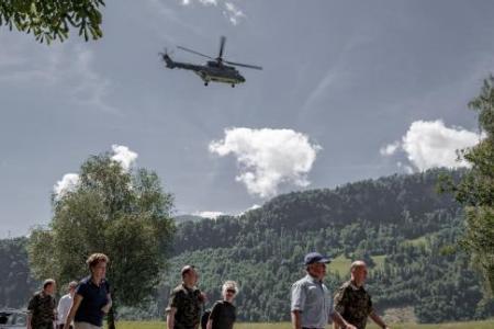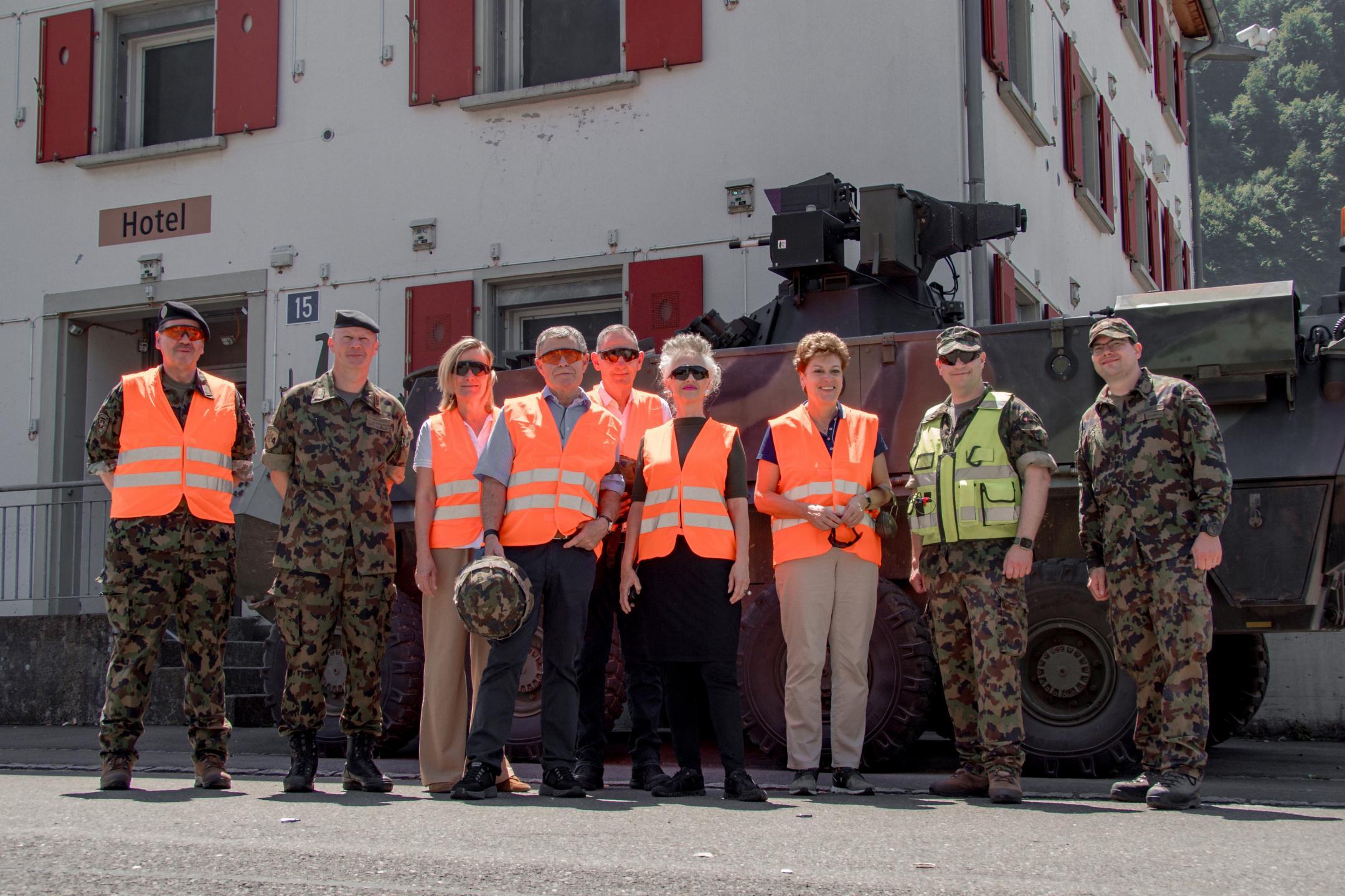 Truppenbesuch in Walenstadt für Zürcher Regierungsräte. Quelle: Sicherheitsdirektion Bild «Regierungsräte mit Helikopter im Hintergrund» herunterladen