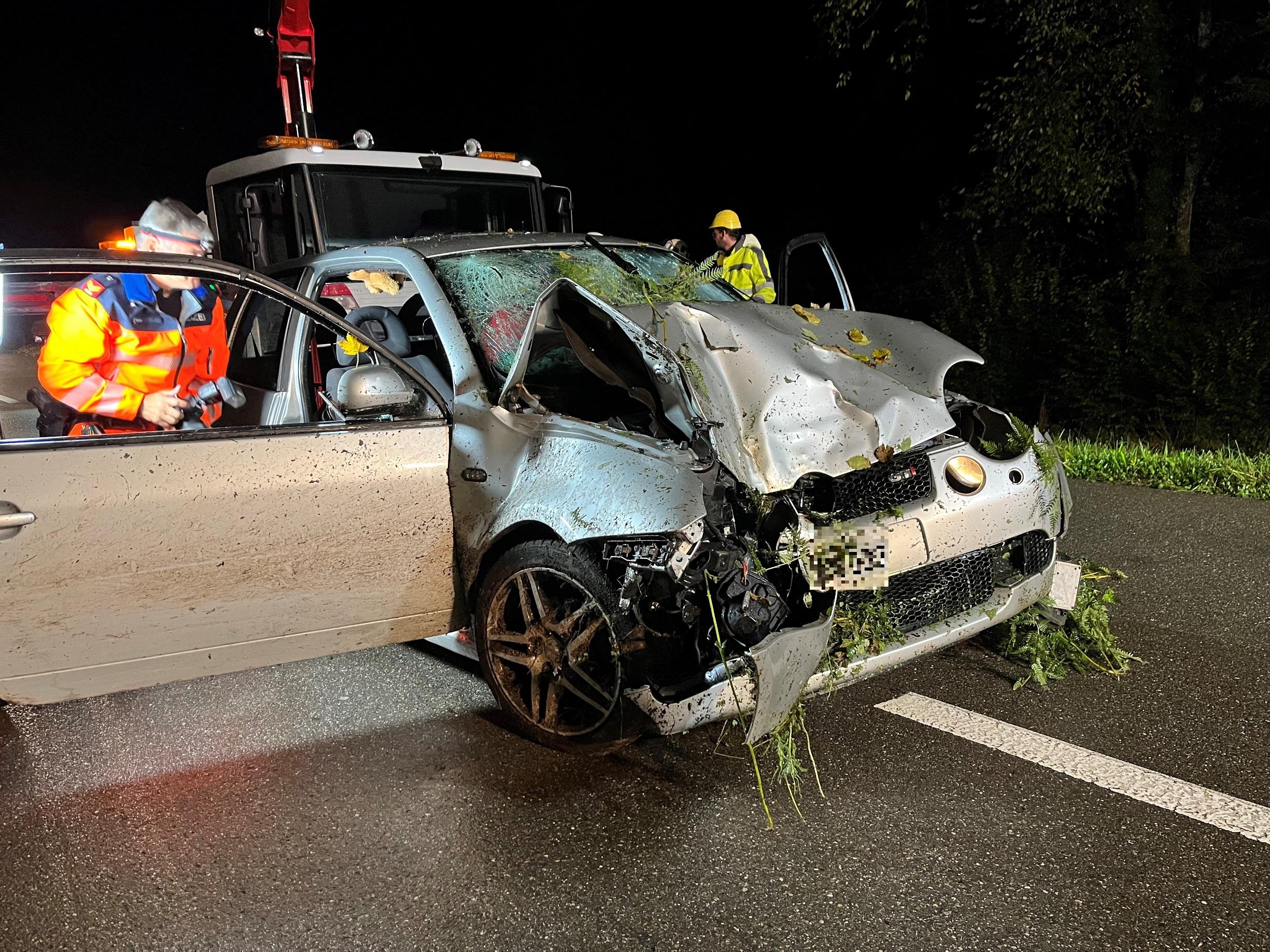 Aeugst am Albis: Selbstunfall mit Personenwagen fordert zwei Verletzte
