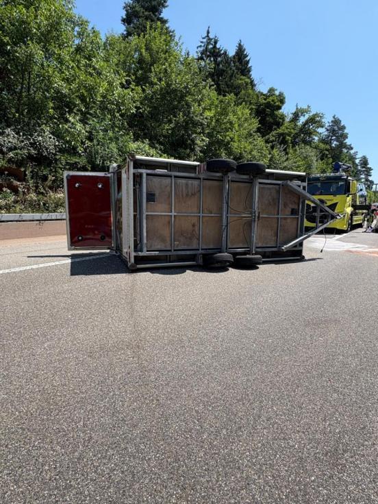 Kurz nach 11 Uhr fuhr eine 58 Jahre alte Frau mit einem Personenwagen und Anhänger auf der A1 Richtung Zürich. Auf dem Gemeindegebiet von Seuzach begann aus bislang nicht bekannten Gründen der Anhänger zu schlingern und kippte um. Den beiden nachfolgenden Fahrzeugen gelang es, rechtzeitig anzuhalten. Das dritte Fahrzeug, ein Lieferwagen mit Anhänger, konnte nicht mehr rechtzeitig stoppen und prallte gegen den vor ihm stehenden Personenwagen. Dieser wurde durch die Wucht des Aufpralls gegen das wiederum vor ihm stehende Auto geschoben. Bei dieser Kollision wurde ein 51-jähriger Lenker leicht verletzt. Er wurde zur Kontrolle mit einem Rettungswagen in ein Spital gebracht.