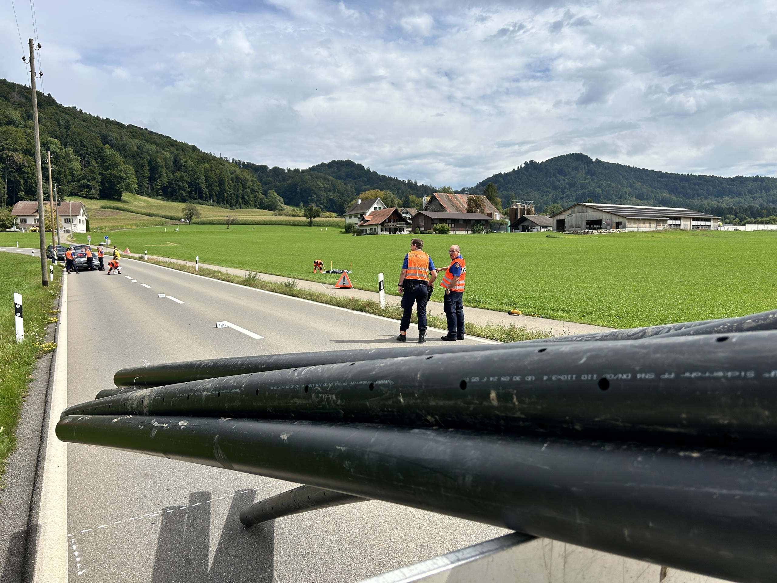 Nach aktuellem Ermittlungsstand waren die Kunststoffrohre ungenügend gesichert, wodurch sie sich während der Fahrt verschoben und auf die Gegenfahrbahn ragten.