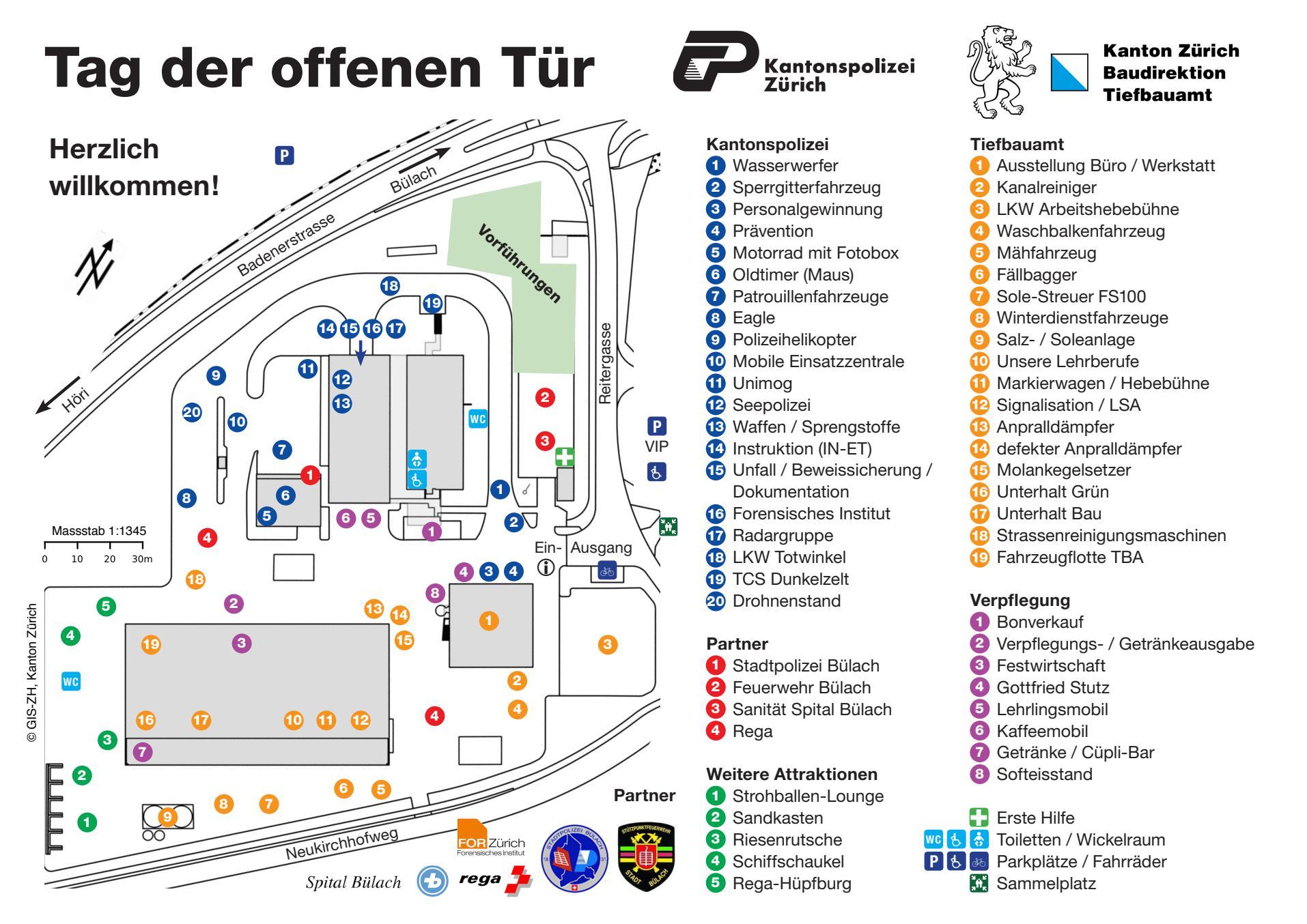 An verschiedenen Ständen informieren wir unter anderem über Einsatzmittel, die Arbeit der Seepolizei, präventive Themen oder das Waffenrecht. Daneben bieten die Partnerorganisationen REGA, Forensisches Institut Zürich FOR, Stadtpolizei Bülach, Rettungsdienst Bülach und Stützpunktfeuerwehr Bülach den Besucherinnen und Besuchern Einblicke hinter die Kulissen.