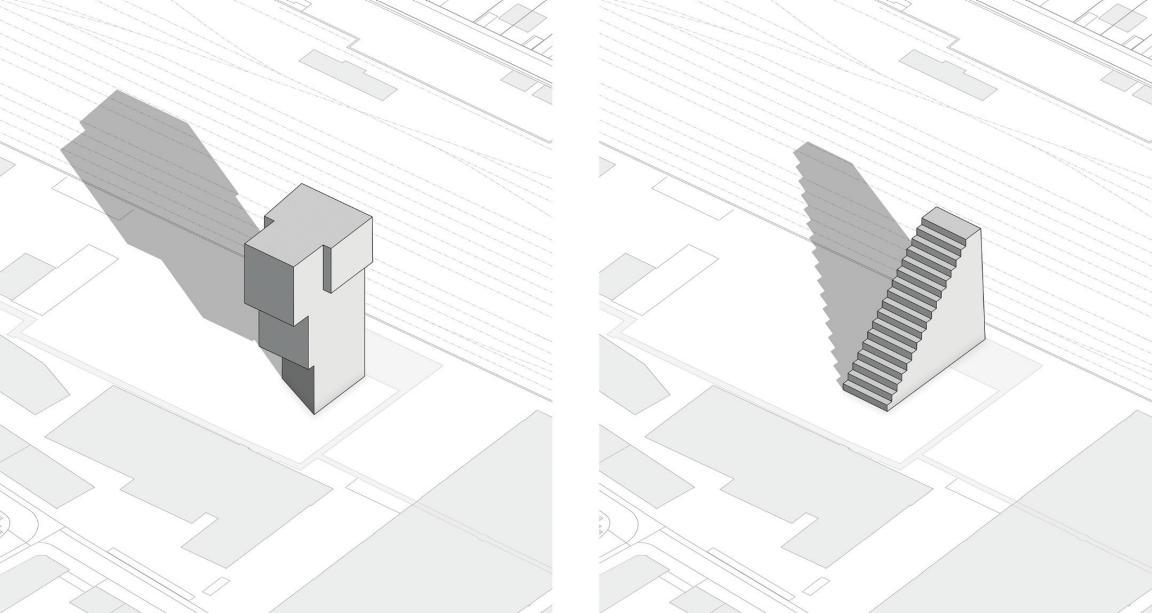 Das kubische Vergleichsprojekt basiert auf den für die Parzelle geltenden planungs- und baurechtlichen Grundlagen. In der Regel besitzt es als Grundfläche alle bebaubaren Bereiche einer Parzelle sowie die maximal erlaubte Höhe der Baute. Das Schattendiagramm des kubischen Vergleichsprojekts wird analog zu jenem des Hochhauses konstruiert.