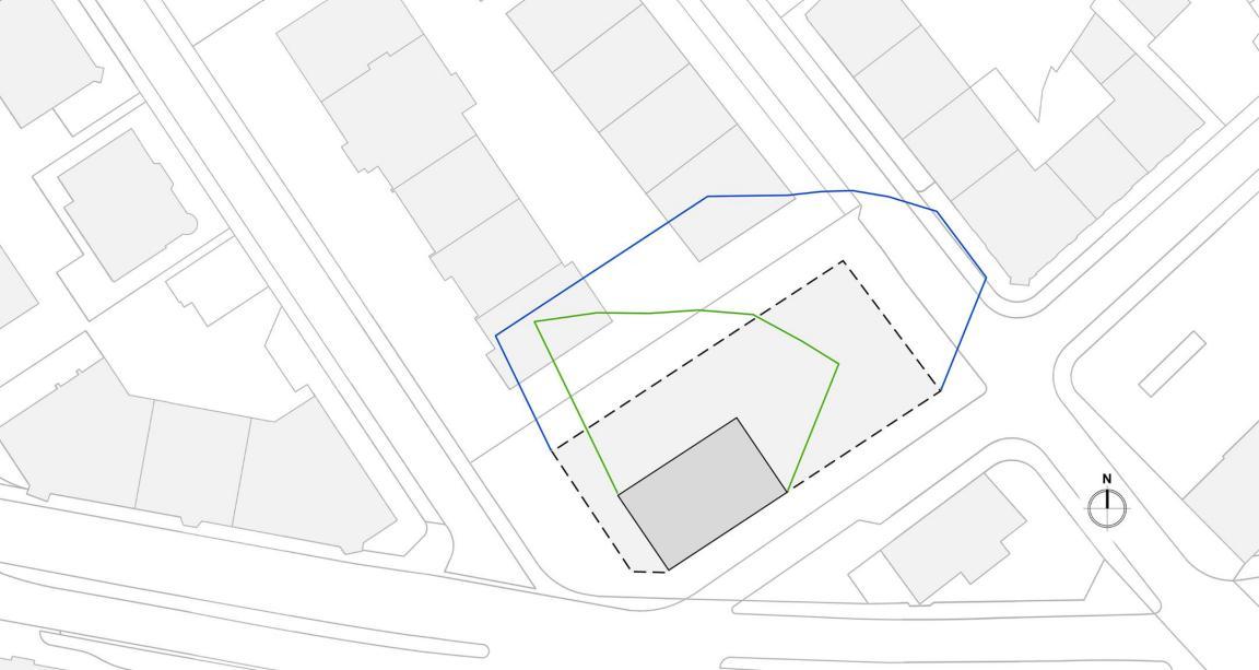 Eine im Vergleich zur Regelbauweise zusätzliche Beeinträchtigung liegt jedoch in jenen Teilen vor, in welchen das Schattendiagramm des Hochhauses über jenes des kubischen Vergleichsprojekts hinausragt. In einem solchen Fall sind die Abstandsregelungen des Hochhausschattens zu berücksichtigen.