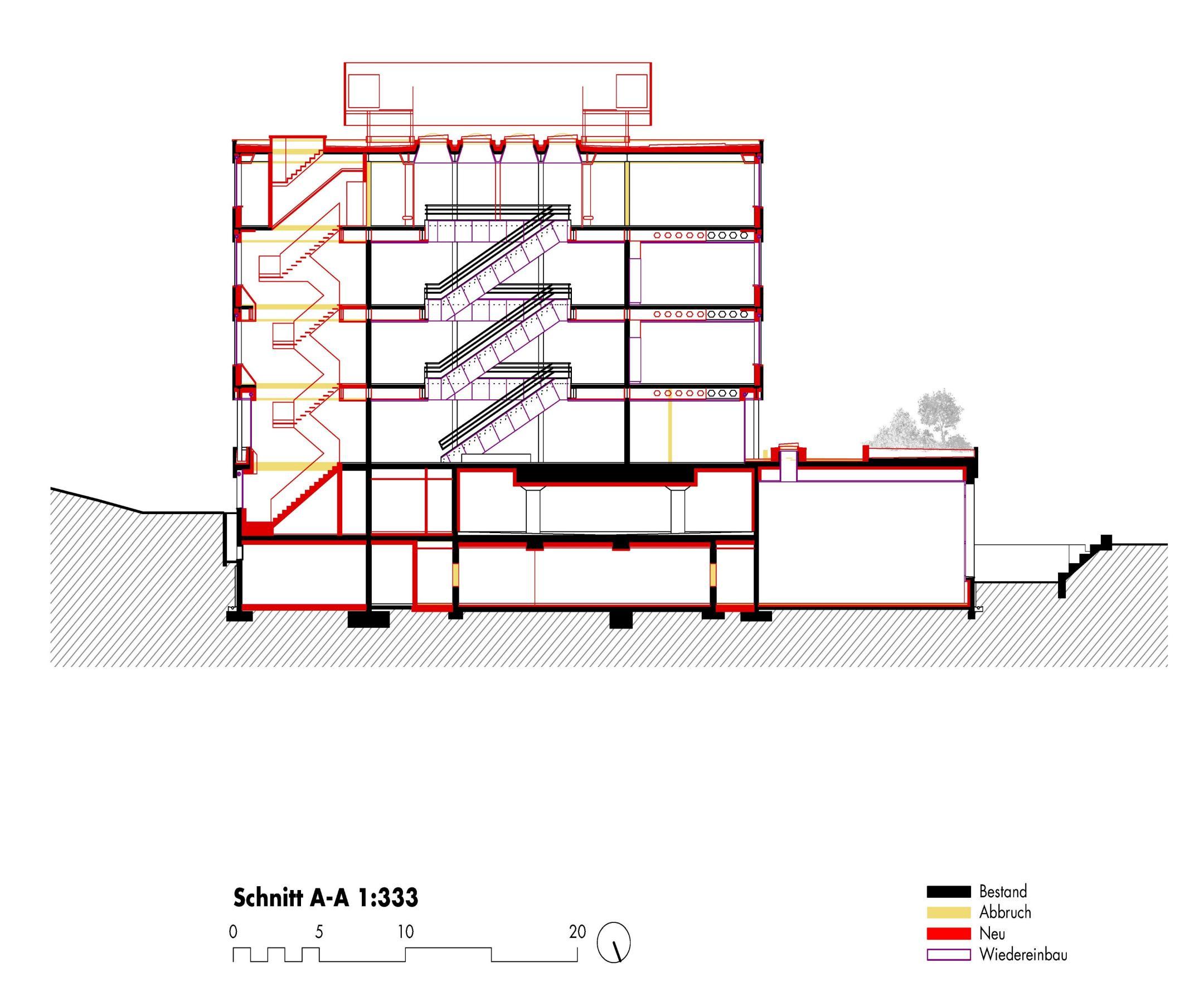 Das Gebäude bedingt einen sensiblen Umgang mit der erhaltenen Originalsubstanz und eine möglichst subtile Integration aller neuen bedingten Interventionen. Die Instandsetzungsmassnahmen wurden in enger Zusammenarbeit mit der kantonalen Denkmalpflege erarbeitet. Das äussere Erscheinungsbild der Fassade bleibt erhalten und sämtliche baulichen Anpassungen werden denkmalverträglich und möglichst ressourcenschonend umgesetzt.