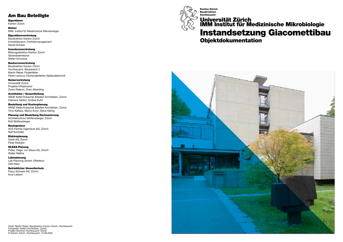 Instandsetzung Giacomettibau IMM Institut für Medizinische Mikrobiologie Universität Zürich