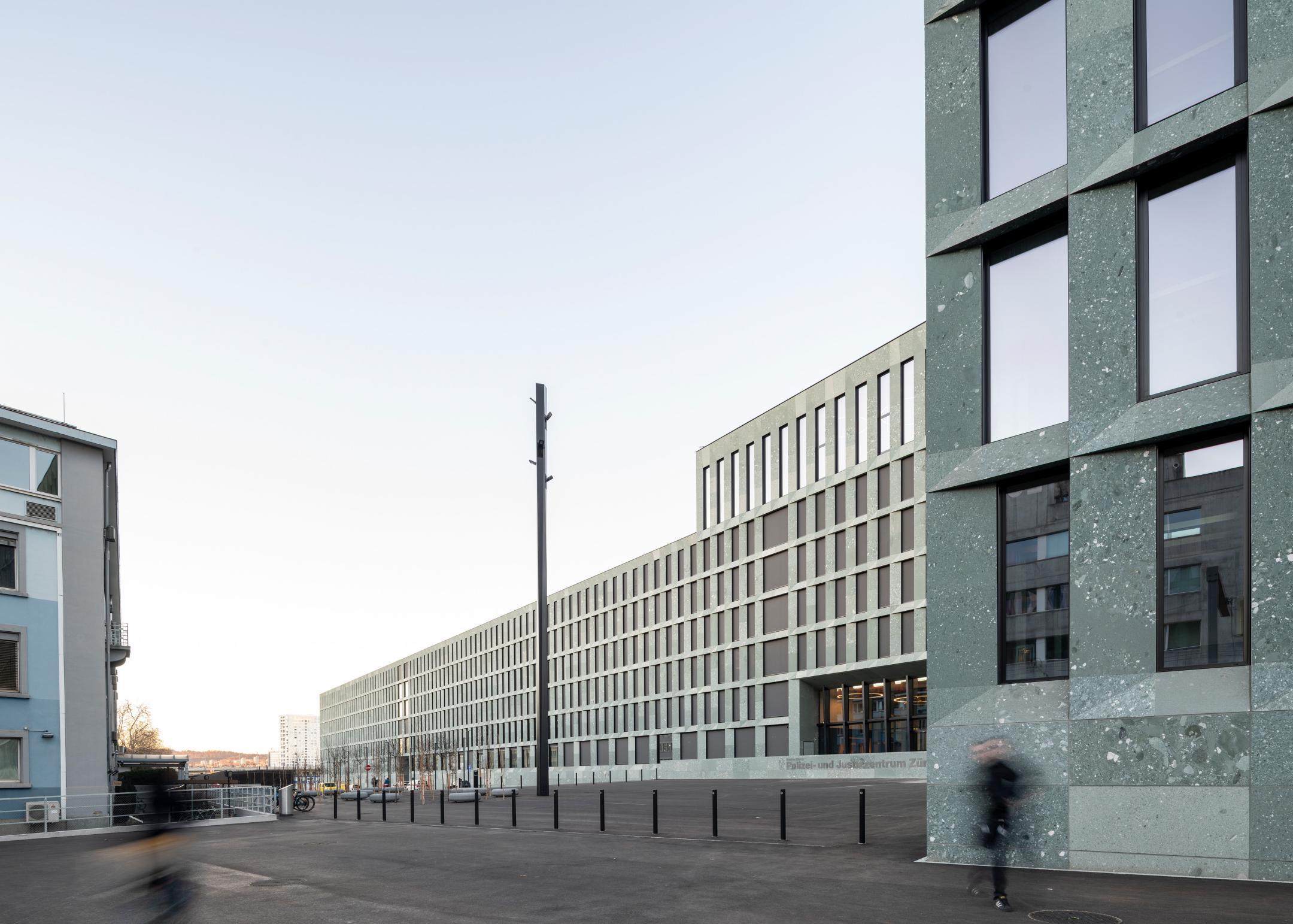 Auf dem ehemaligen Areal Güterbahnhof in Zürich Aussersihl-Hard ist das PJZ entstanden. Im Neubau werden Abteilungen der Kantonspolizei, der Staatsanwaltschaft und des Justizvollzugs sowie das Forensische Institut, die Zürcher Polizeischule und Teile des Zwangsmassnahmengerichts zusammengefasst. Insgesamt umfasst das PJZ rund 2030 Arbeitsplätze. Dazu kommen 241 Haftplätze für vorläufige Festnahmen sowie die Untersuchungshaft.