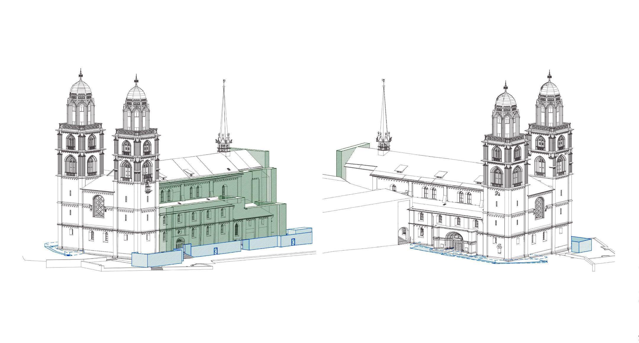 Die Grossmünster-Kirche in der Altstadt von Zürich ist mit ihren Doppeltürmen eines der bekanntesten Wahrzeichen von Zürich und zählt jährlich rund eine halbe Million Besucherinnen und Besucher. Neben Gottesdiensten und anderen religiösen Feierlichkeiten finden regelmässig Veranstaltungen und Führungen statt. Um die Bausubstanz der zwischen 1100 und 1220 erbauten Kirche langfristig zu erhalten, wird sie aussen und innen umfassend instand gesetzt. Dazu sind auch Massnahmen erforderlich, um das Raumklima zu regulieren, um die Zerfallsprozesse so weit wie möglich zu verlangsamen. Ebenso soll der Kulturgüterschutz verbessert werden.