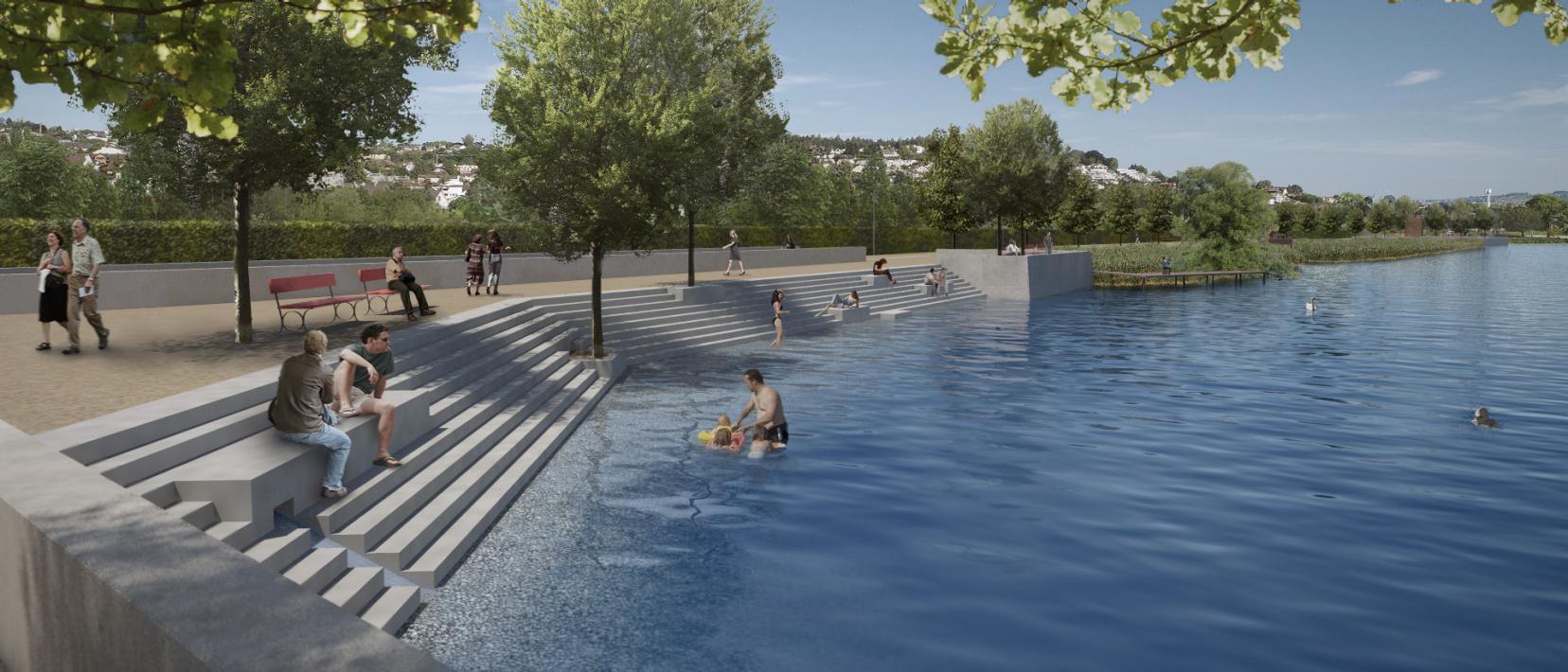 Im neu angelegten Flachufer unterhalb der Promenade siedeln sich erste Pflanzen und Tiere an. Damit sich die neuen Lebensräume ungestört entwickeln können, muss das Flachufer geschont werden. Wir bitten Sie deshalb, den Uferbereich nicht zu betreten und auch Hunde davon fernzuhalten.