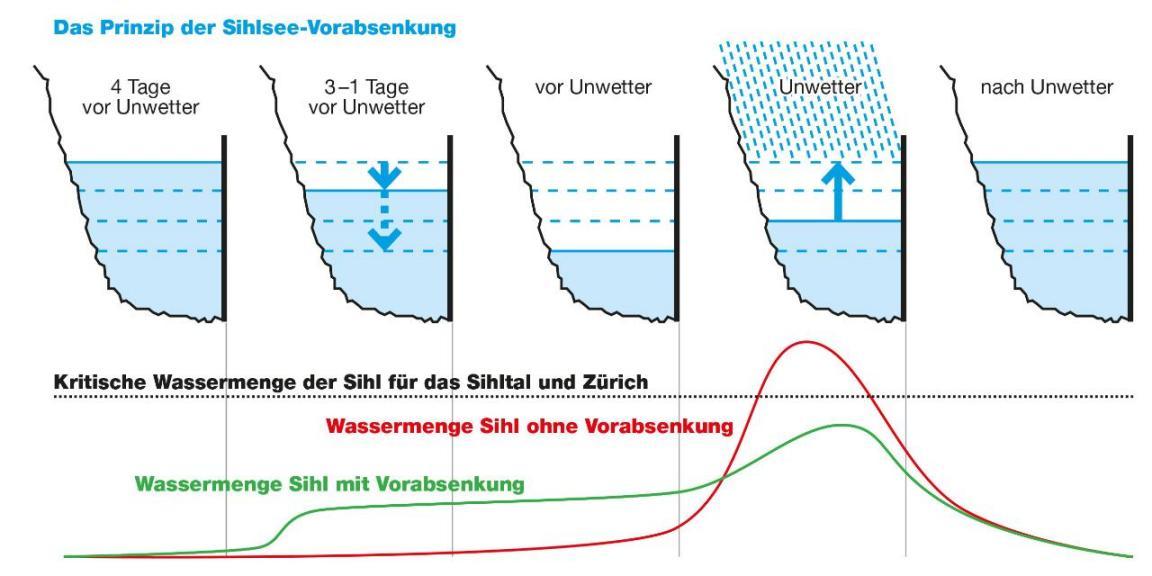 - die Kombination von Vorabsenkung und automatisierter Sihlseesteuerung im Ereignisfall.