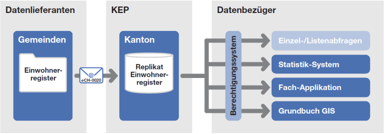 In der kantonalen Verwaltung werden heute in fast allen Bereichen Personendaten benötigt. Mit der KEP besteht eine zentrale Kopie der kommunalen Einwohnerregister. Von dieser kantonalen Plattform können berechtigte öffentliche Organe Personendaten beziehen. Die KEP erhält laufend Mutationsmeldungen aus den Gemeindesystemen und ist daher stets aktuell. Die Datenhoheit bleibt jedoch bei den Gemeinden.