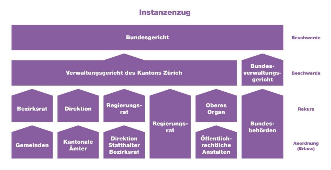 | Direktion / Statthalter / Bezirksrat | Regierungsrat | Verwaltungsgericht des Kantons Zürich | Bundesgericht |