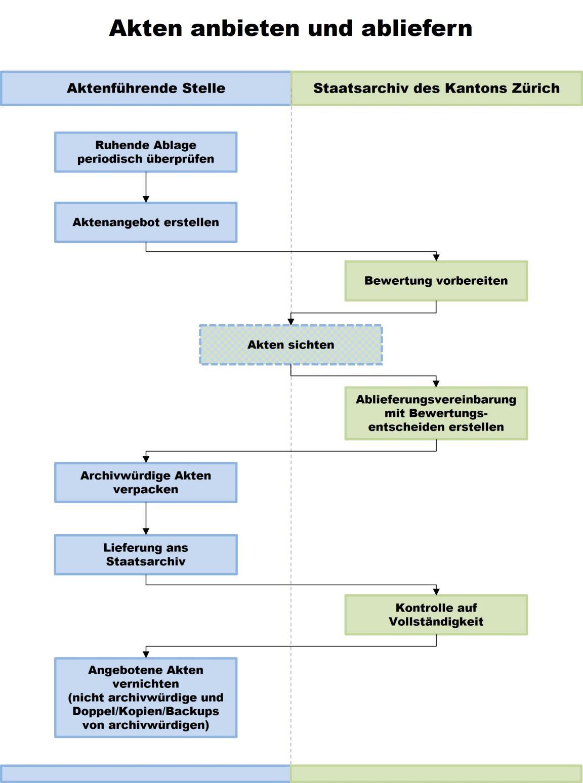 Ablaufschritte beim Anbieten und Abliefern von Unterlagen an das Staatsarchiv -