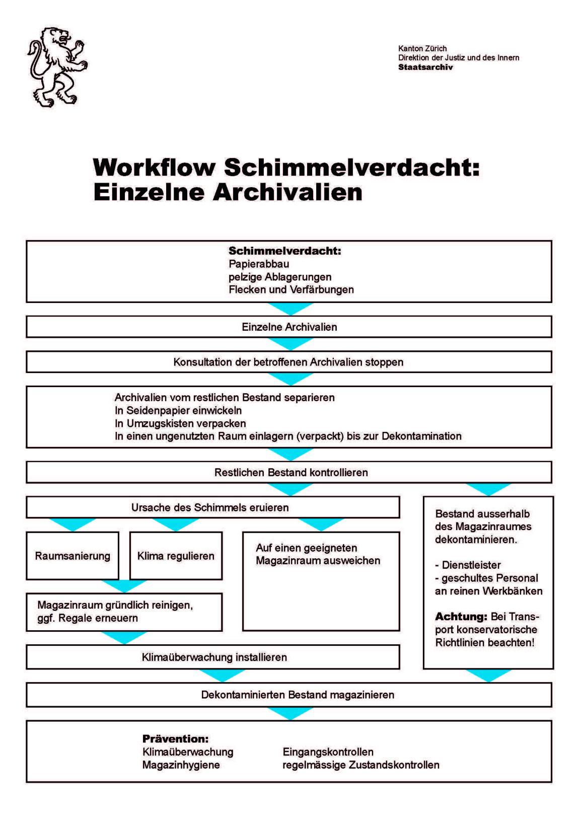 Das Staatsarchiv hat einen Ablauf erarbeitet, wie Sie bei Verdacht auf Schimmelbefall am besten vorgehen.