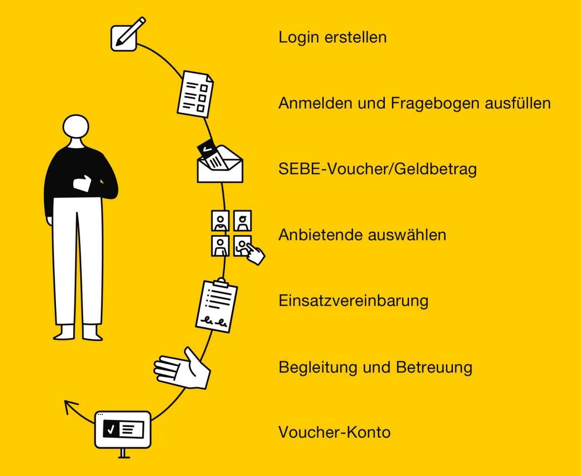 Wenn die Einsatzvereinbarung unterschrieben ist, können Sie Begleitung und Betreuung bei SEBE erhalten und mit Ihrem Voucher bezahlen.