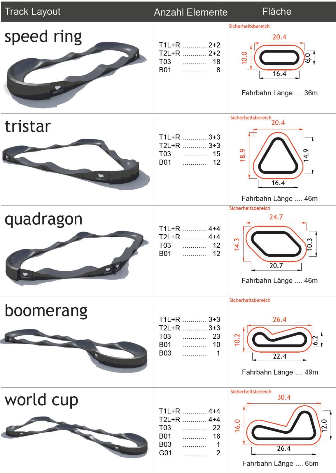 Die mobilen Pumptracks bestehen aus einzelnen Elementen, die auf verschiedene Arten miteinander kombiniert werden können. Die Tragekonstruktion ist aus Holz, das Obermaterial und die Fahrbahn aus einem rutschfesten Überzug (Fiberglas). Die mobilen Pumptracks können in fünf Formen und Grössen aufgebaut werden. Wenn möglich wird die Variante «world cup» installiert, die über eine Fahrbahnlänge von 65 Metern verfügt. Wenn nicht genügend Platz vorhanden ist, kann alternativ auch das Layout «boomerang» aufgestellt werden.