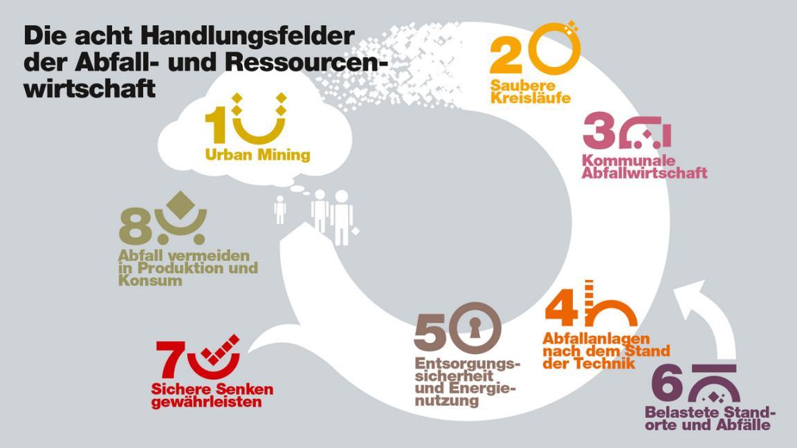 Abfälle stecken voller Wertstoffe und Energie. Dieses Ressourcenpotenzial muss noch stärker genutzt werden: Saubere Stoffkreisläufe sind eine Voraussetzung, damit die zurückgewonnenen Stoffe hochwertig in Produkte zurückgeführt werden können. Ist eine stoffliche Verwertung nicht möglich, müssen Energie und Ressourcen über eine thermische Behandlung möglichst ökologisch, klimaschutzwirksam und kosteneffizient zurückgewonnen werden.