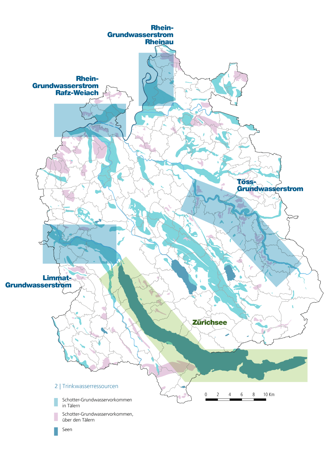 Kanton und Gemeinden haben die Aufgabe, die Versorgung der Zürcher Bevölkerung mit einwandfreiem Trinkwasser langfristig und überregional sicherzustellen. Die Grundwasserressourcen, die heute und künftig für deren Versorgung entscheidend sind, müssen geschützt werden.